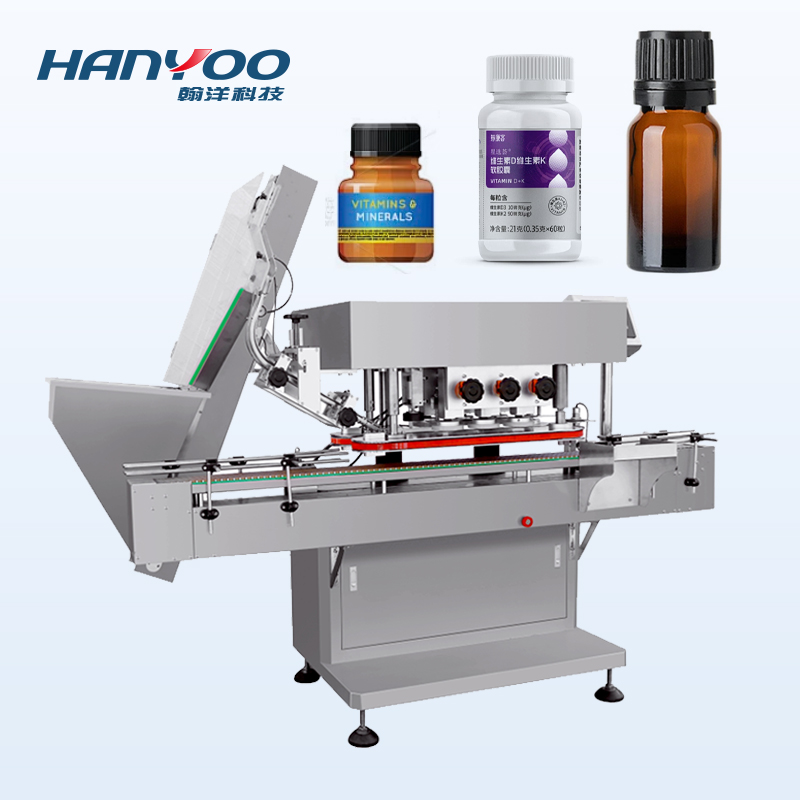 Mesin ini menggunakan mekanisme pengangkatan tutup bertingkat dengan stabilitas yang baik. Jika tutup tidak terpasang dengan benar, tutup akan secara otomatis jatuh kembali ke dalam hopper penyimpanan tutup.